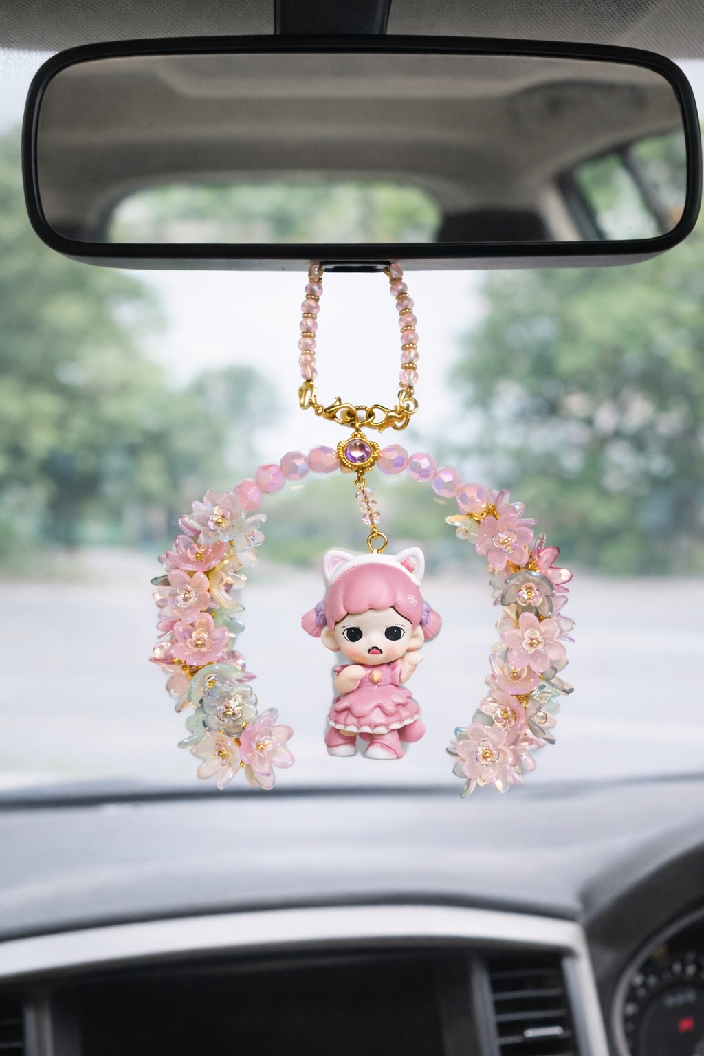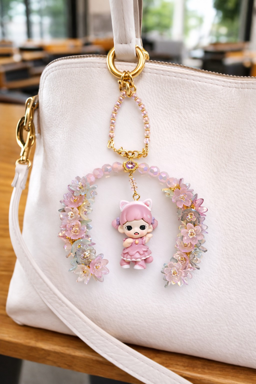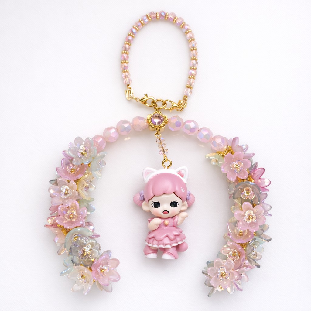 Bijou de sac et de voiture fait main de 16 cm, cette création délicate mêle perles lumineuses et personnage raffiné pour apporter une touche d’élégance poétique à votre sac, votre intérieur de voiture ou votre quotidien, tout en affirmant un style unique et précieux.