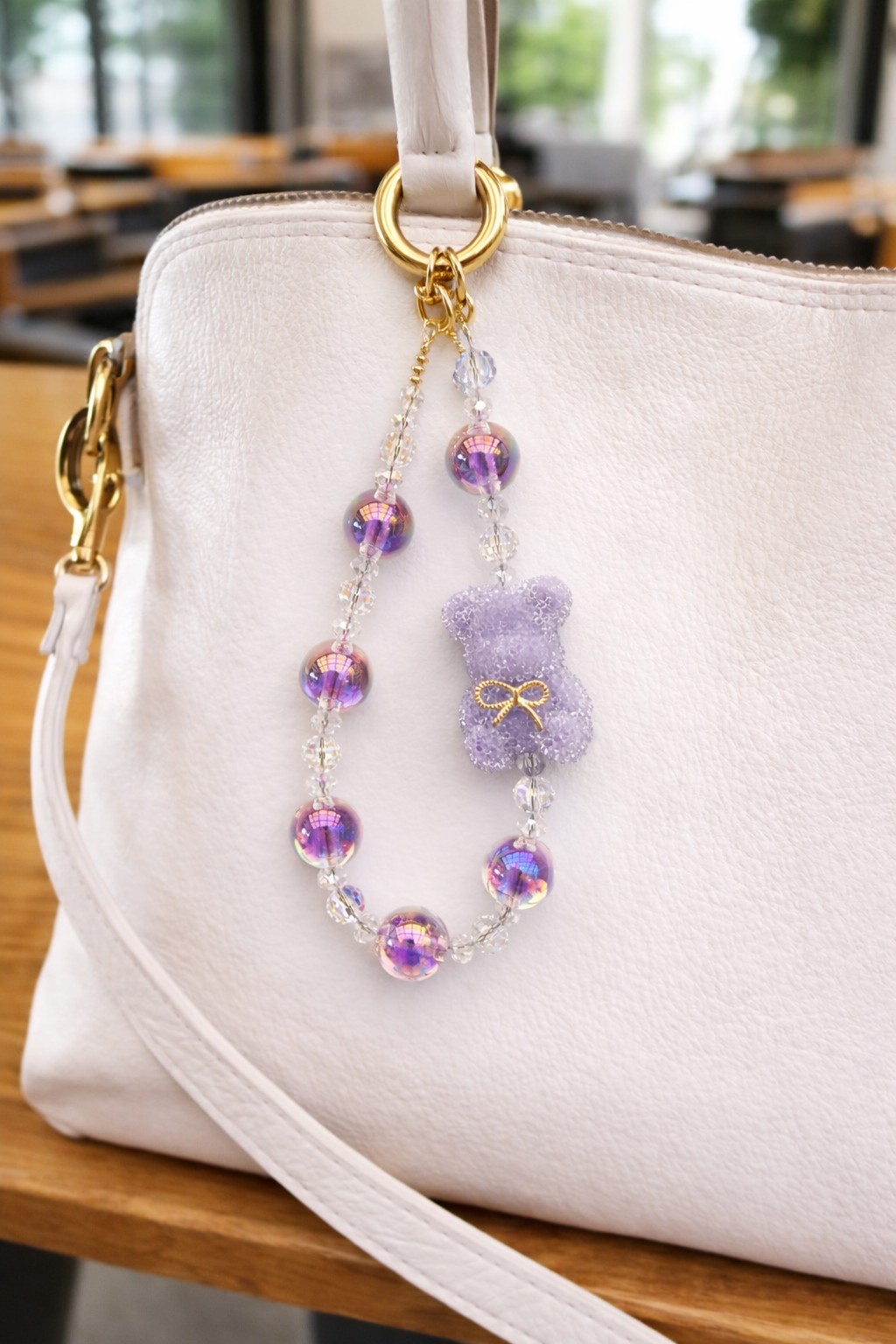 Bijou de sac fait main de 12 cm, sublimé par des perles irisées aux reflets délicats et un adorable ourson scintillant, pensé comme un véritable bijou d’exception. Élégant et poétique, il habille votre sac avec raffinement et peut également se porter en bijou de téléphone pour une touche précieuse et unique au quotidien.